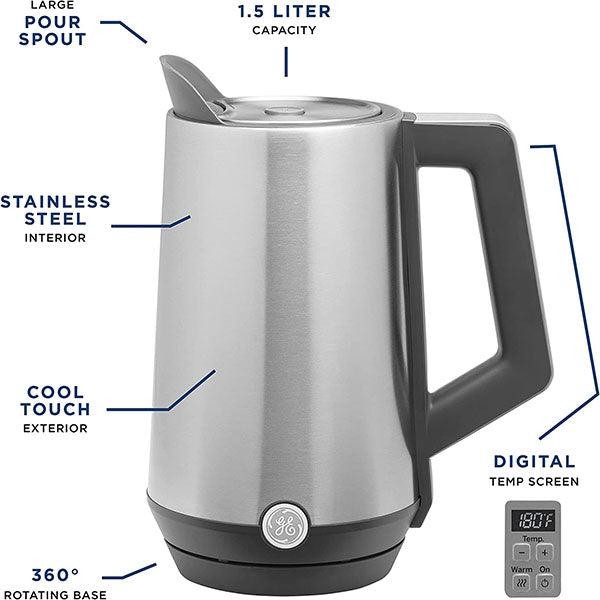 غلاية كهربائية GE بتحكم رقمي في درجة الحرارة 1.5 لتر ستانلس ستيل