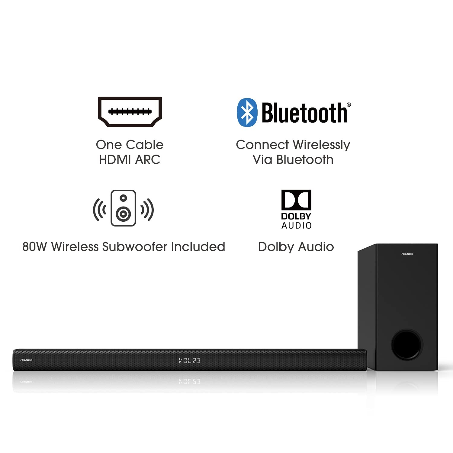 يعمل مكبر الصوت HS218 على تحسين تجربة صوت التلفزيون وهو مثالي لأجهزة التلفزيون مقاس 50 بوصة أو أكبر. بدلاً من مجرد سماع المشهد، يتم نقلك إليه. يتضمن مكبر الصوت تقنية البلوتوث لسهولة الاتصال اللاسلكي بالجهاز الذكي. استمتع بالموسيقى من هاتفك الذكي أو التابلت أو اللاب توب. مع HDMI (ARC)، يمكن توصيل مكبر الصوت هايسينس بالتلفزيون الخاص بك من خلال كابل HDMI واحد (متضمن)، والاتصال لاسلكيًا عبر البلوتوث، والتحكم في كليهما بجهاز تحكم عن بعد واحد. ستستمتع بصوت تلفزيون أفضل في دقائق. احصل على أفضل أداء صوتي من الموسيقى والأفلام والأخبار بلمسة بسيطة من جهاز التحكم عن بعد مع إعدادات معادل الصوت المتعددة المضبوطة مسبقًا. يتضمن مكبر صوت هايسينس وكيبل HDMI وكيبل بصري ومجموعة تثبيت على الحائط للتأكد من أن لديك ما تحتاجه لتحقيق أقصى استفادة من تجربة صوت هايسينس الخاصة بك بمجرد إخراجها من الصندوق. التصميم الأنيق مع مضخم الصوت اللاسلكي القوي سيناسب بسهولة غرفة المعيشة أو غرفة النوم أو مساحة غرفة العائلة. لن تحتاج إلى العثور على مساحة لفرع كبير وستستمر في الحصول على صوت كبير.